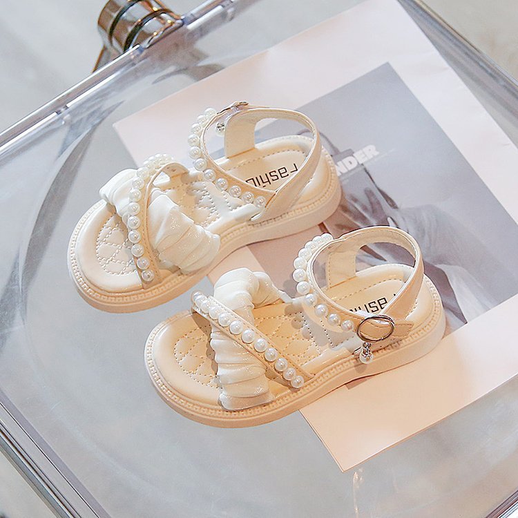 Aumentar cantidad para Calzado, sandalia blanca, perlas, Bautismo, Cortejo