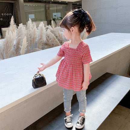 Aumentar cantidad para Conjunto blusa a cuadros mas jeans❤️💕1126