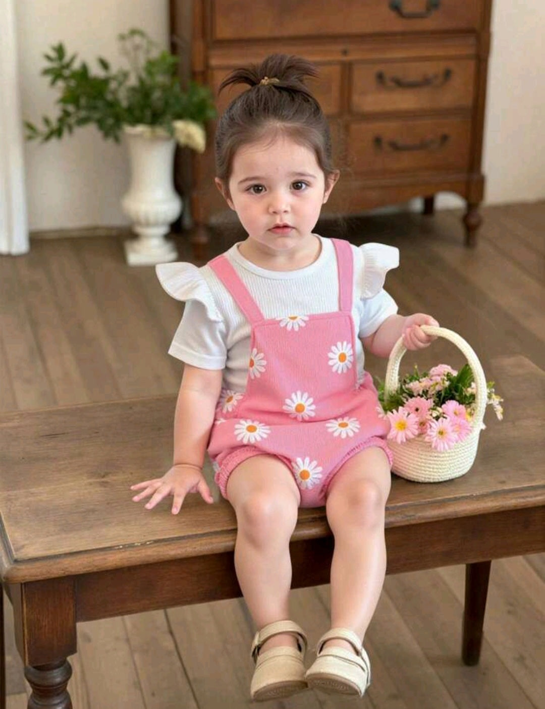 Conjunto Jardinera rosa con margaritas más blusa🌸