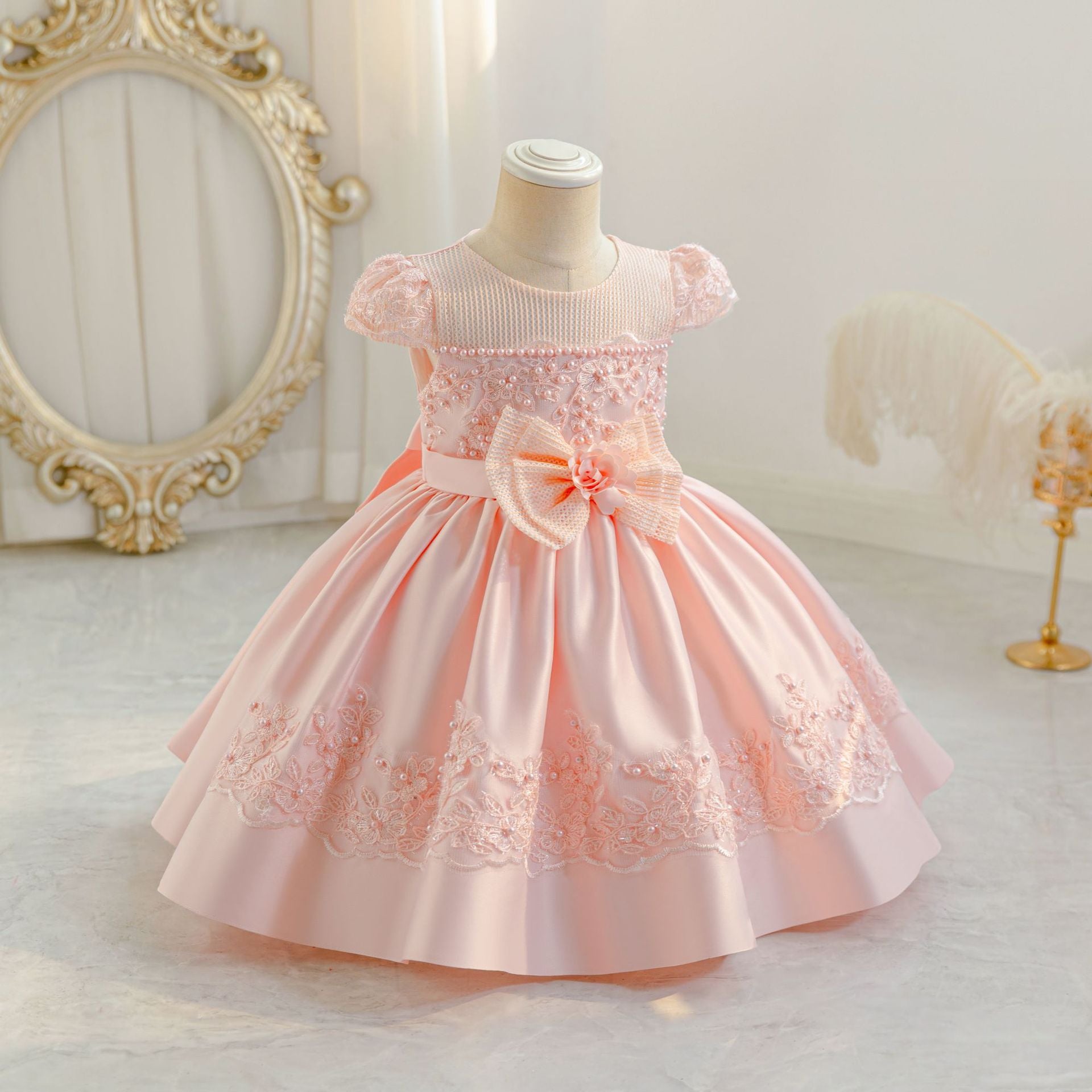 Vestido rosa con manguita y perlitas🩷🎀1572