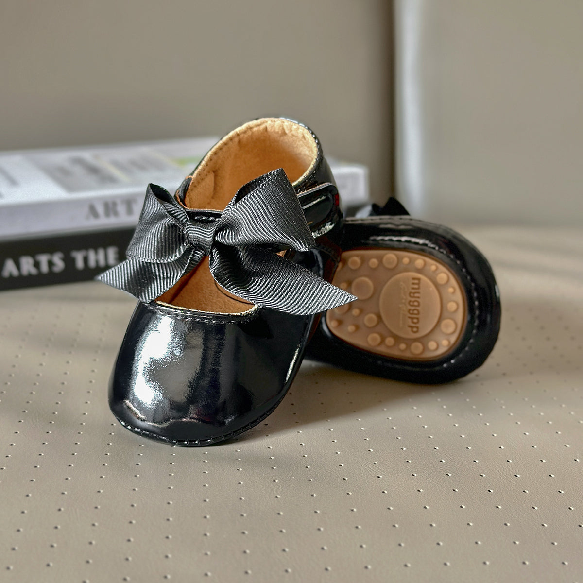 Zapatitos, calzado, negro, charol, moño